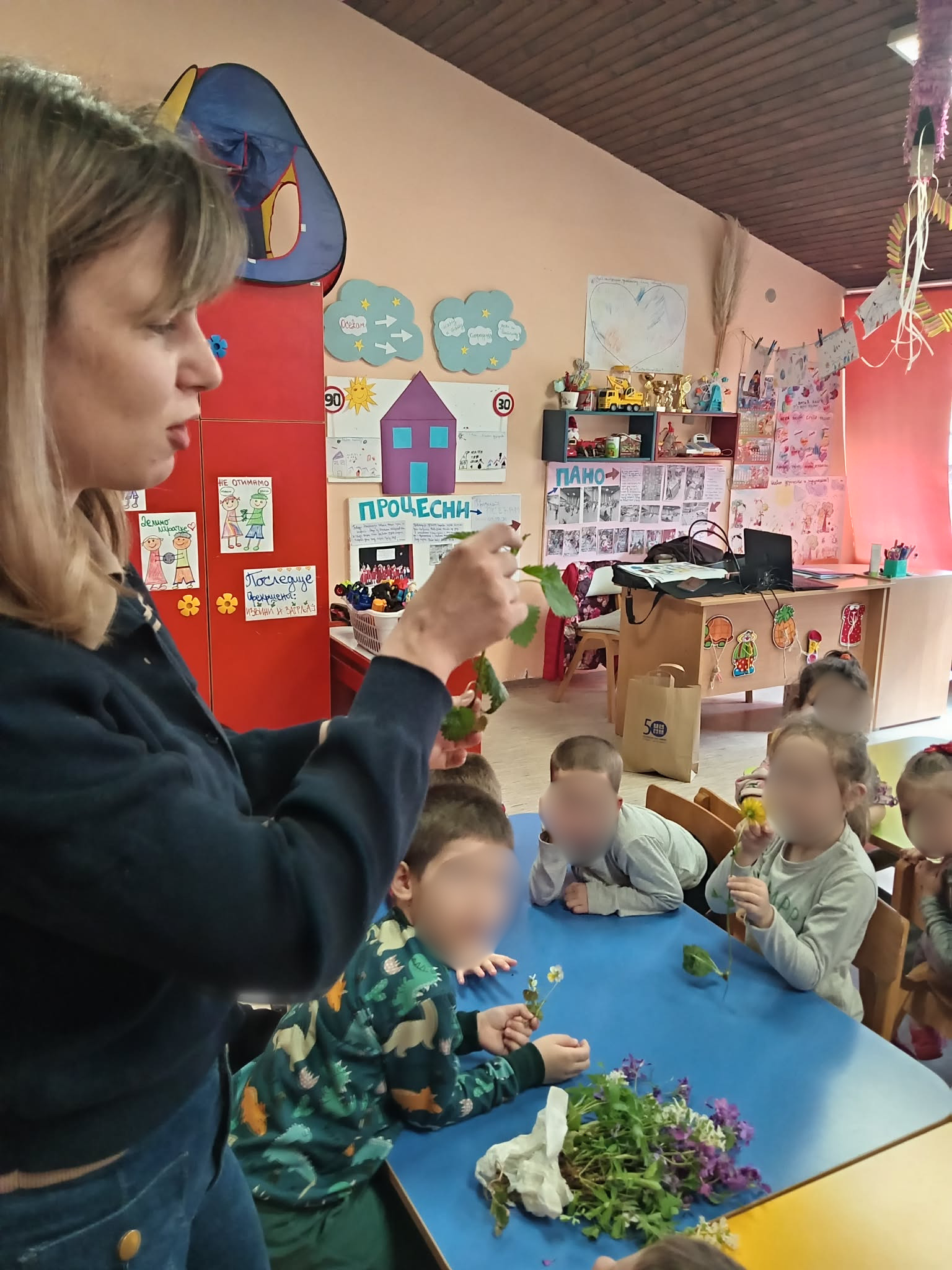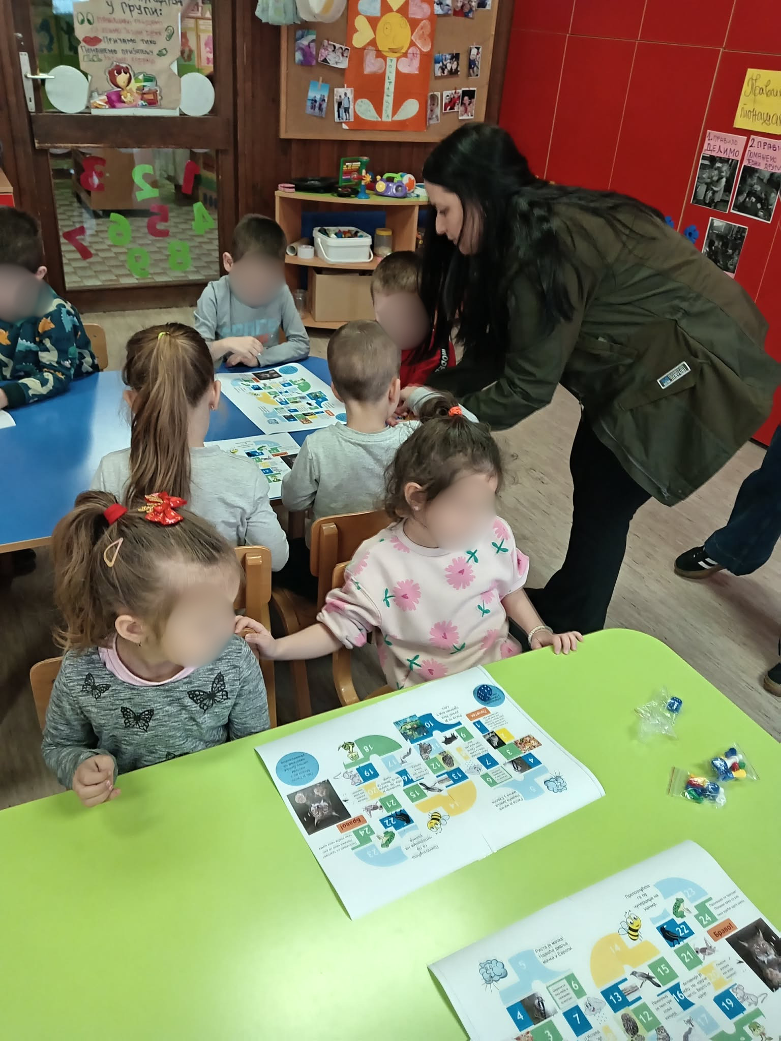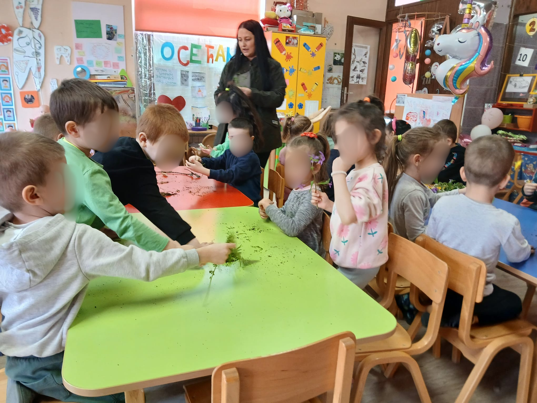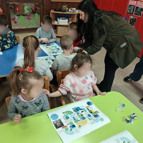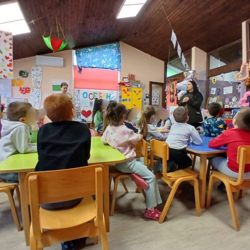 У објекту Предшколске установе „Марија Мунћан“ у Доњем Милановцу одржана је едукативна радионица у оквиру пројекта „Осећам“ који се спроводи у васпитној групи, током које су деца учила да природу доживе користећи своја чула. Чуло вида и слуха смо пробудили посматрајући фотографије и слушајући звуке животињског света и природних појава. Затим смо, кроз игру, „кренули у шуму“, у потрагу за рисом Ристом. На сваком „кораку“ деца су добијала задатке: да понове звук из природе, опонашају кретање животиња, тихо прате трагове риса и повремено застану како би осмотрили околину. На овај начин, учили смо да у шуми будемо пажљиви и користимо сва своја чула. На крају радионице, деца су имала прилику да део природе доживе кроз додир и мирис, да помиришу љубичицу и додирну маховину.
